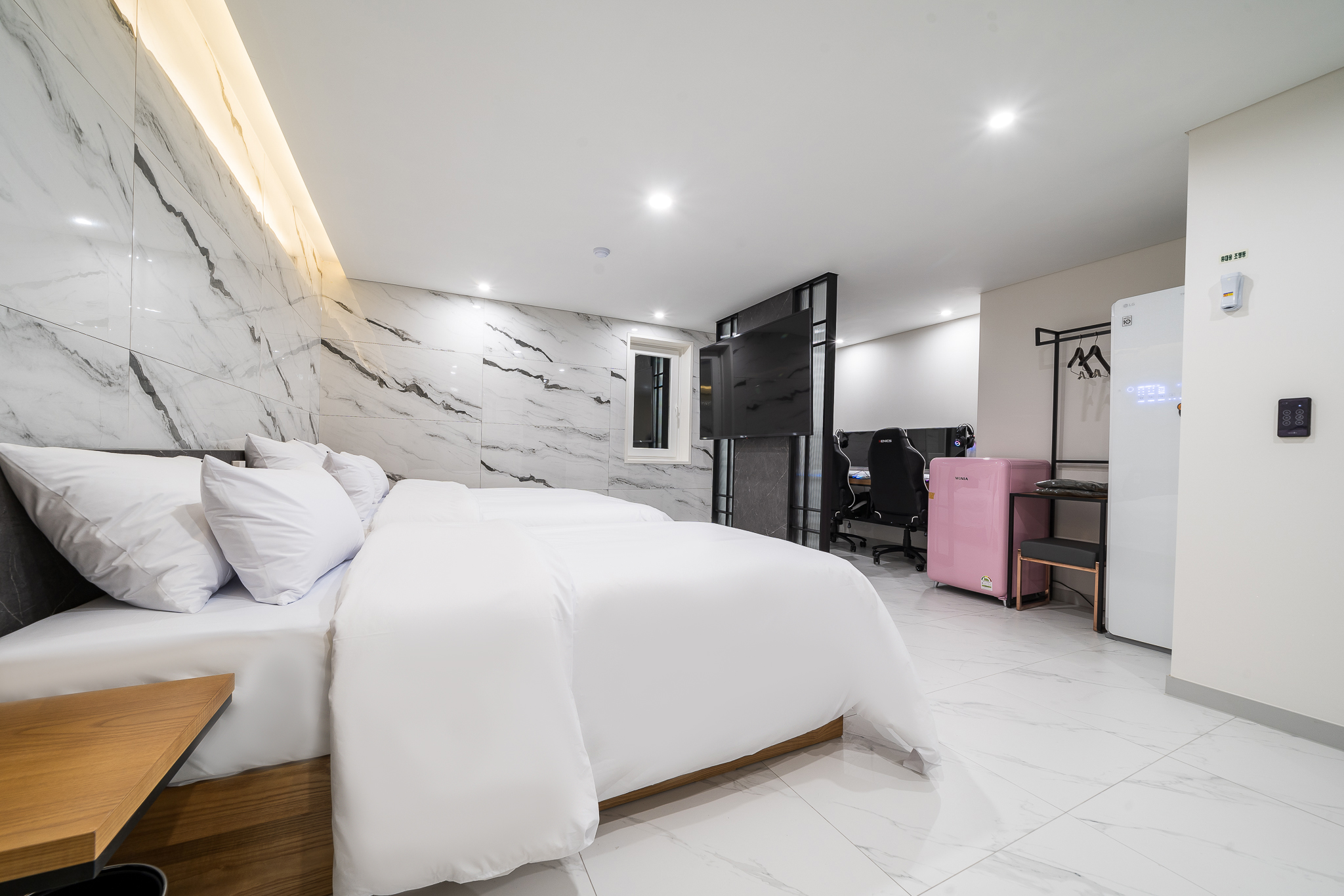 SUITE TWIN (3060게이밍 2PC,투베드,LG70인치 TV)(안마의자,스타일러,비데,공기청정기,욕조,넷플릭스,디즈니 6종OTT무료시청)